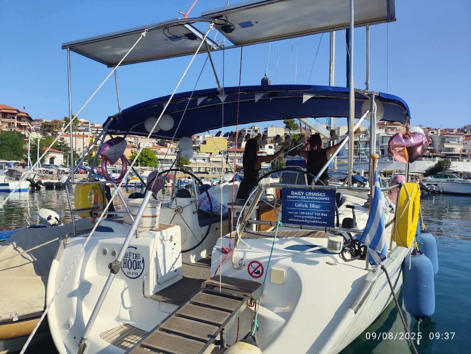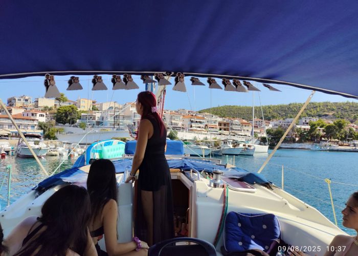 Our boat departs every day from Neos Maramaras and offers unforgettable private our group sailing cruises in the Aegean.