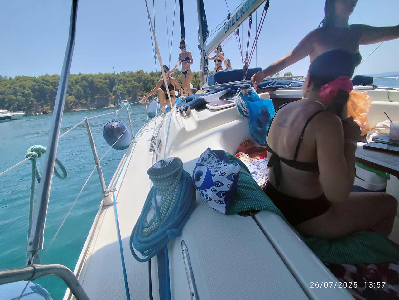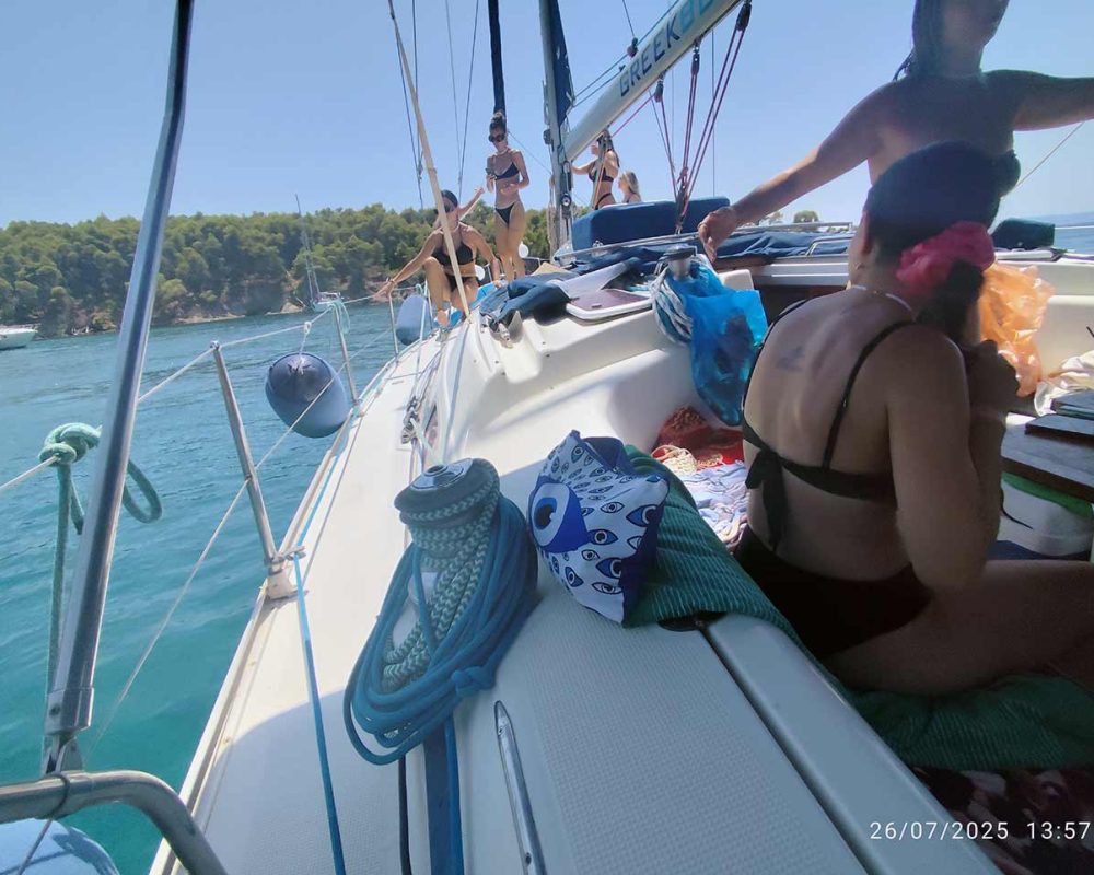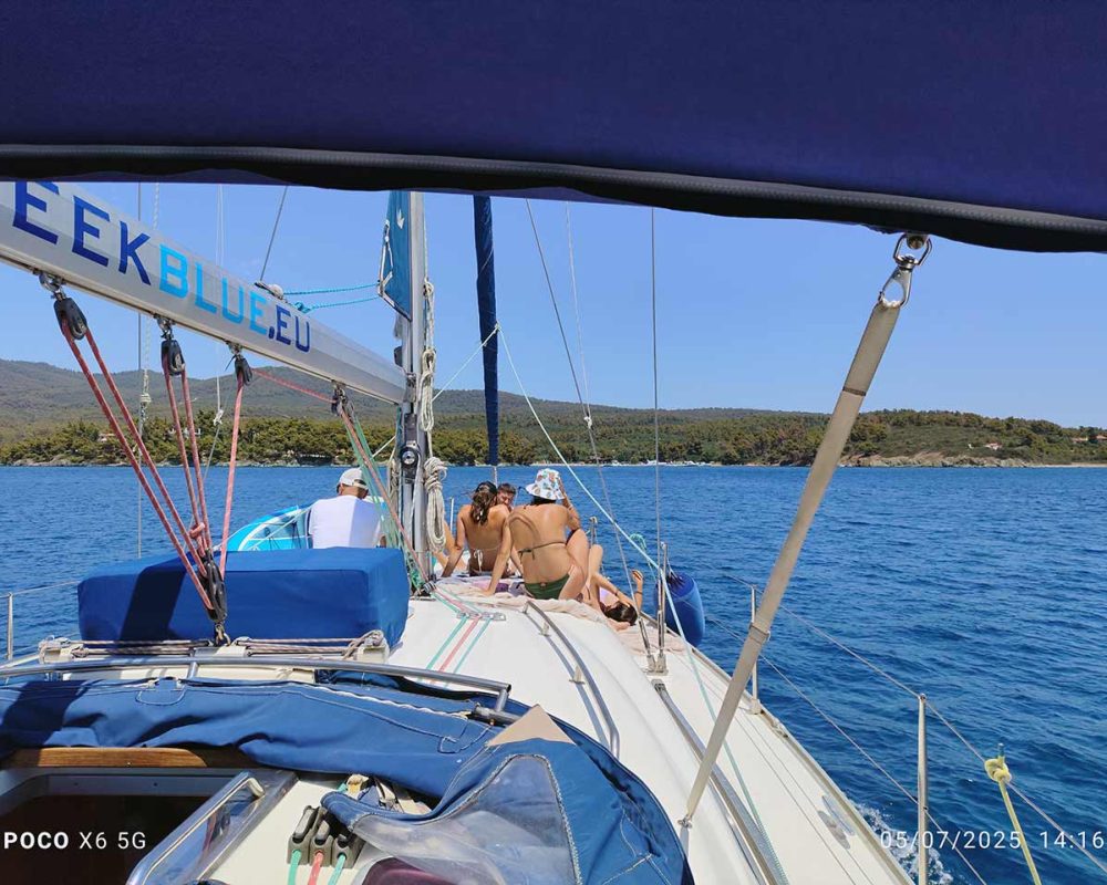 The next stop is the islet of Kelyfos where you can continue diving, observing the seabed or sunbathing on the boat away from the hustle and bustle. There before the departure for our return to Neos Marmaras you can enjoy a Greek dessert made of yogurt and Halkidiki honey.